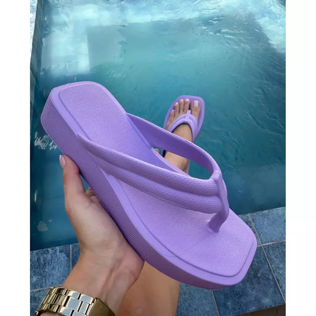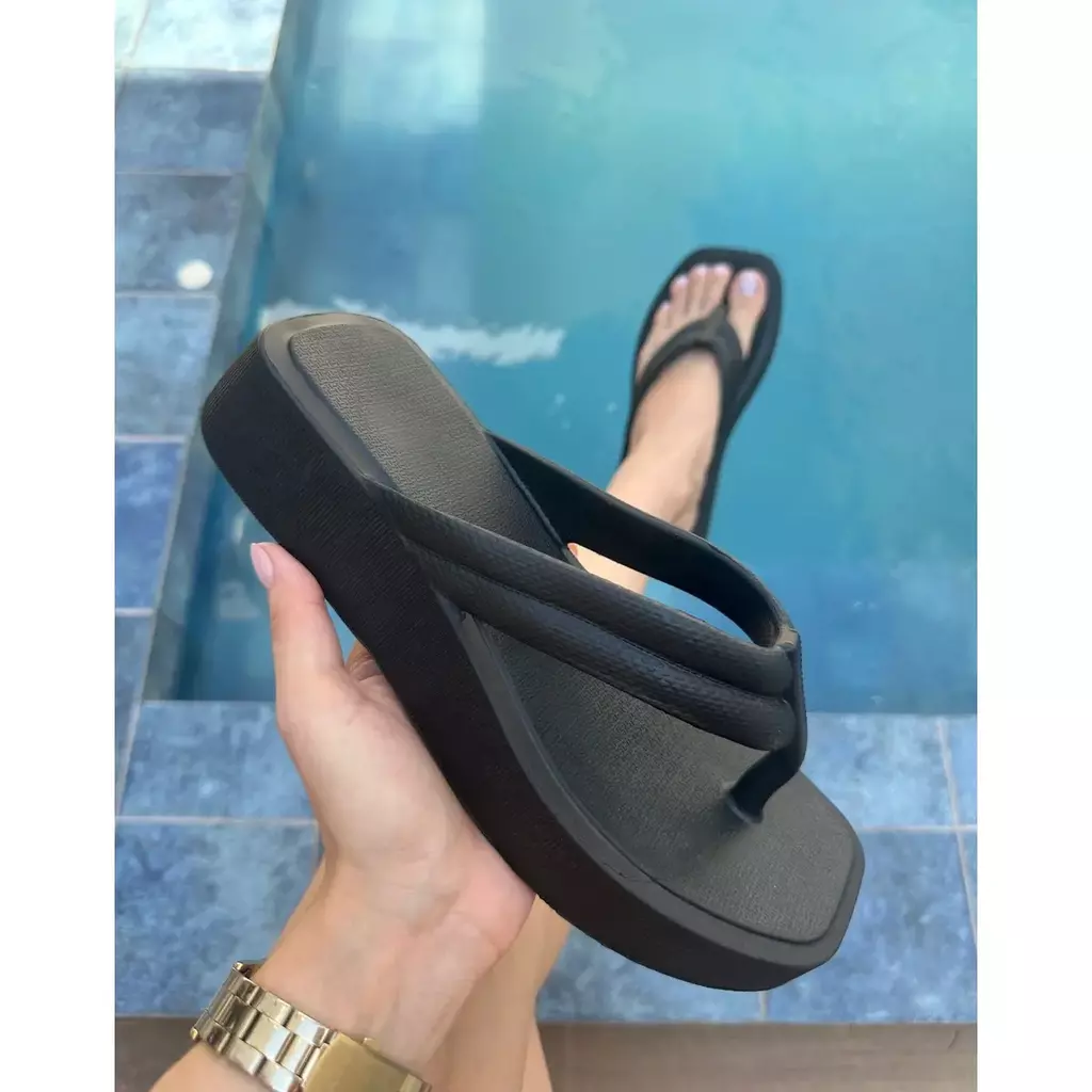 Solado: Plataforma em EVA, antiderrapante