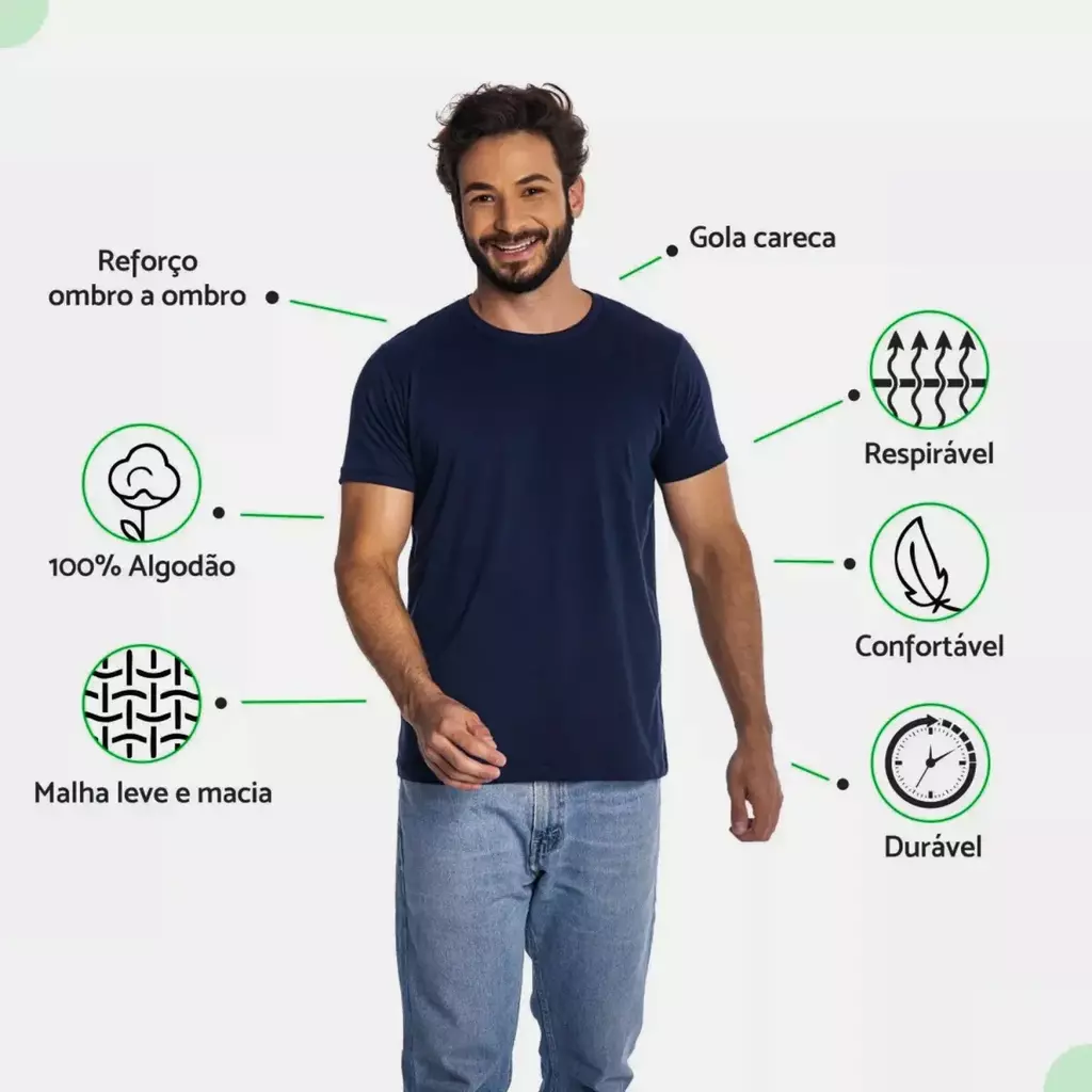 Material: 100% Algodão Premium com malha penteada fio 30.1